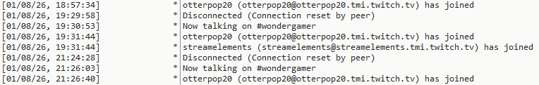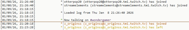 first shows in the IRC logs for my Twitch channel,