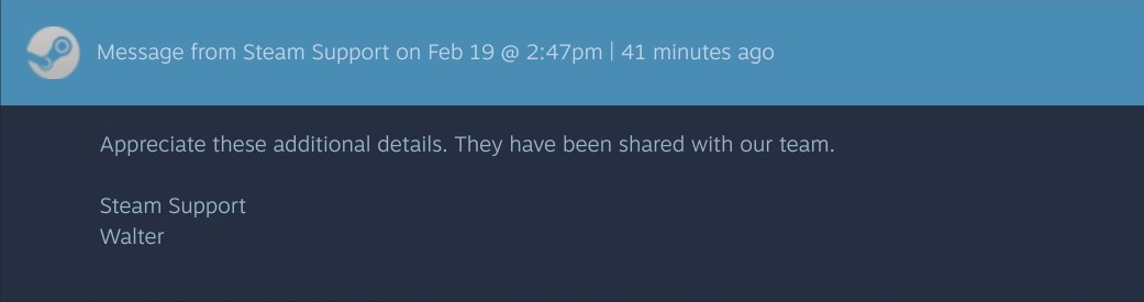 After yet another management-supported attack on Steam, I determined it was time to get the support ticket logs from the original attack public, those will be published beyond this point (of course there will still be censored content in these messages):