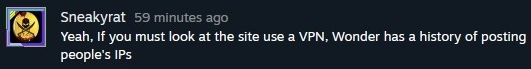UPDATE: After checking Steam comments again to back up some more evidence of the harassment for re-listing on this page to display the personalities of individuals participating in this mass attack, I determined it was time to start putting IP bans in place for misuse of the site for doxing purposes, property theft from the site (being republished to other sites) & defamation being published on Steam. Despite the accusations that are being made by the individuals making attacks on Steam, these IPs are NOT being published & may be removed after a couple years of of the attacks ending.