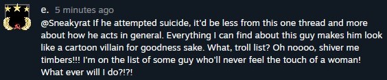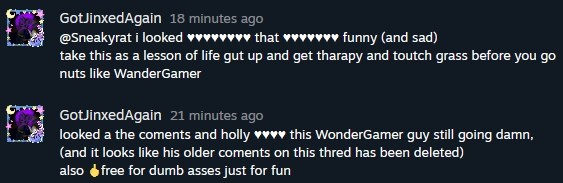 Steam troll from the original 2023 mass-harassment movement |