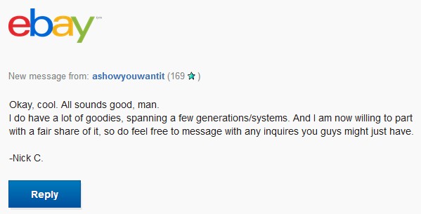What that last response does show is that ashowyouwantit won't knowingly deal with middlemen, so unless you're hiding that fact, that's going to cut out importation of items he's selling to companies & individuals like myself to customers that either don't want to mess with sites like eBay or don't have the ability to due to lack of internet or understanding to do so (trust me, there are people that don't; my parents are still messing with AOL dial-up & Windows XP, where they can't do most stuff online, getting me to do it for them). You might say he's only going to be hostile towards those that are being middleman, but how are you sure he won't just accuse you of being a middleman whether you are or are not? The best bet to those who are reading this would be to avoid purchasing from him over eBay entirely (and other sites if you know his other online profiles, not all sellers stick to just eBay), as he's already made his attitude towards his sellers known (or at least I'm making it known by making his statements & actions public), regardless of whether the shoe fits or not, so if you choose to take your chances & purchase from him, just keep in mind that I posted this article for a reason & I tried to warn people of what could happen if they do decide to purchase from him after reading this.