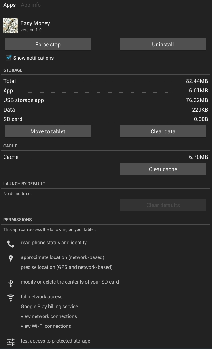 As expected, those apps that are force-downloaded through Andyroid do gain access to your personal information. The fact that these apps take your information without your permission not only classifies Andyroid as spyware, but the fact that it downloads those apps & loads them without your permission would also classify it as a virus. So from this point I will be keeping track of those apps that are getting force downloaded & launched, as well as the information that is being stolen from us seeing as Andyroid force-downloads & opts us into involuntary data-collection through these apps: