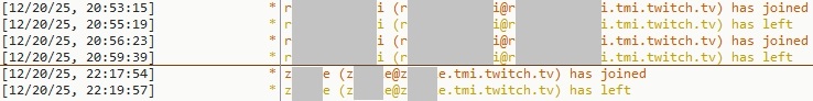 This screenshot shows a couple of users that showed up in my Twitch channel (this screenshot will be updated as necessary as I don't believe this is over yet). Their reason for being in the channel is unknown, but based on what was going on on 800notes around the timeline that these entries showed on my IRC logs, it's HIGHLY likely they followed through the articles on this site to my Twitch channel to cause problems. Given it's currently unknown why they were in the channel, the names have been censored, but I can always revert that change if I find out they were in the channel for the reason I currently think they were in there.